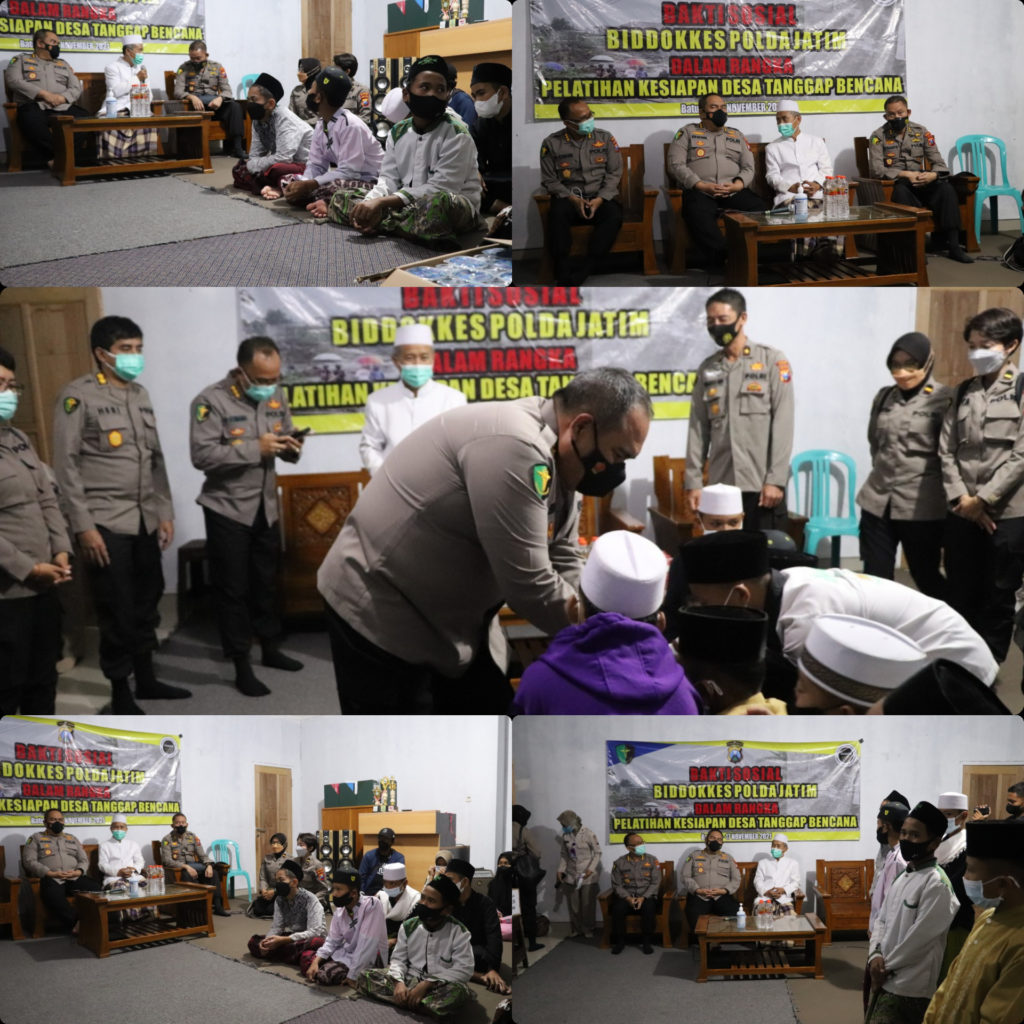 Kepala Bidang Dokter Kesehatan (Kabid Dokkes) Polda Jatim KBP Erwin Zainul Hakim melaksanakan kegiatan Bakti Sosial di Panti Asuhan Ar-Ridlwan Desa Mojorejo, Kecamatan Junrejo, Kota Batu, Selasa (16/11/2021).