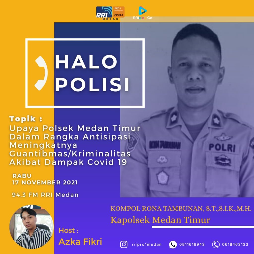 Dialog Interaktif Halo Polisi Polda Sumatera Utara, Rabu (17/11/2021) sekitar pukul 15.00-16.00 WIB ini, masih tetap daring, bekerjasama dengan RRI di channel 94, 3 FM Pro 1 Medan, dengan hostnya Azka Fikri.