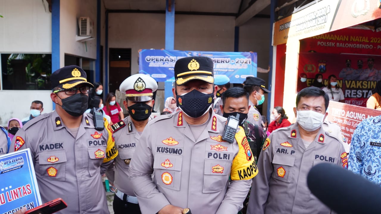 “Kami himbau masyarakat untuk selalu mematuhi tertib berlalu lintas dan disiplin protokol kesehatan. Dengan pendekatan humanis, kami edukasi untuk mematuhi keduanya. Serta kami juga menyediakan vaksinasi dan bakti sosial sembako bagi masyarakat,” ujar Kombes Pol. Kusumo Wahyu Bintoro.