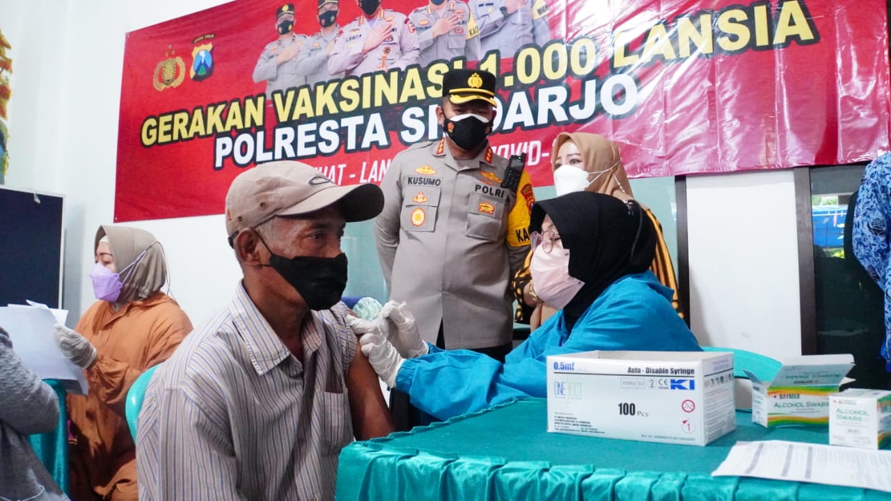Untuk mengejar target 60 persen vaksinasi bagi orang lanjut usia (lansia), Polresta Sidoarjo terus memasifkan vaksinasi dengan menyediakan 1.000 dosis vaksin ke Desa-Desa.