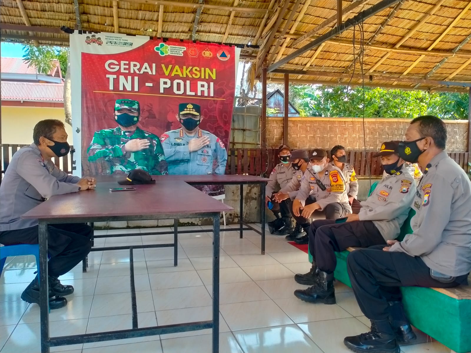 Setelah kegiatan apel pagi, personil Bhabinkamtibmas Polsek Biringkanaya Polrestabes Makassar sengaja dikumpulkan oleh Kanit Binmas, Iptu Harisa guna menerima arahan.