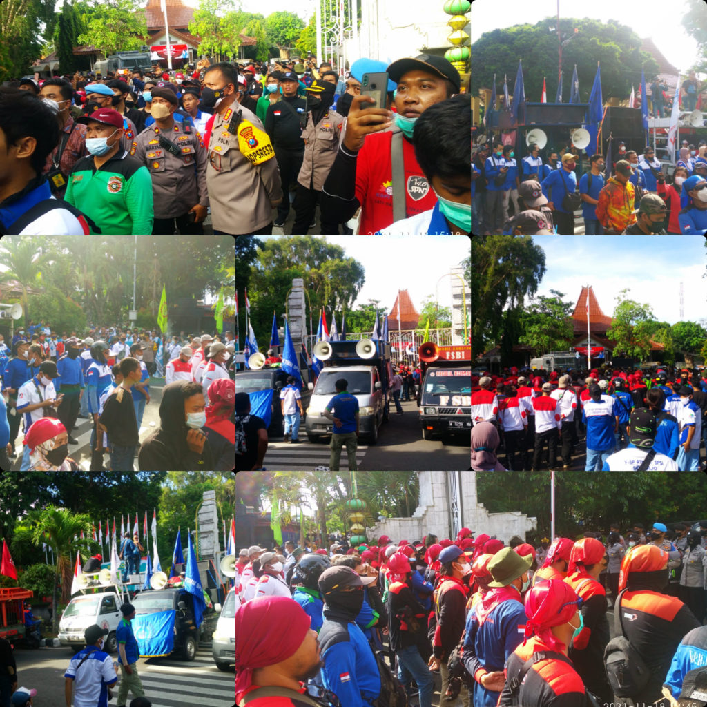 Dari pantauan tim awak media persbhayangkara menyampaikan,Aksi unjuk rasa oleh SPL, FSPMI,FSP,RTMM,SPSI,PPBS, Kabupaten Sidoarjo, menuntut penetapan UMK/UMSK Tahun 2022 dan perbaikan kinerja sistem pengawas ketenagakerjaan di wilayah Jatim. Dan sejauh ini Kabupaten Sidoarjo belum bisa berani mengambil tindakan kenaikan UMSK terlebih dahulu,karena Kabupaten yang lainnya masih belum naik,hasil rembuk bersama dipendopo juga belum ada titik temunya. Sulton