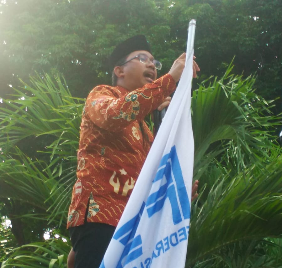 Masa sekitar 1000 orang gabungan dari SPL, FSPMI,FSP,RTMM,SPSI,PPBS didepan Kantor Pendopo Pemkab Sidoarjo Jalan Jengolo No.444 Gajah timur pucang Kecamatan Sidoarjo Kota,dengan pengawalan dari Kapolresta Sidoarjo. Diduga dalam orasi tersebut ada yang berucap presiden gendeng dan mentrinya gendeng,ucap lantang si orasi