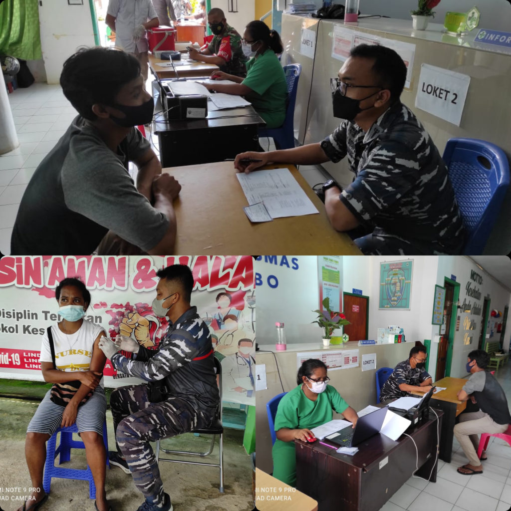 Guna mendukung program pemerintah mencapai 1 juta vaksin setiap harinya sekaligus menjalankan arahan Kepala StafAngkatan Laut Laksamana TNI Yudo Margono, S.E., M.M, Pangkalan TNI AL Aru melaksanakan serbuan vaksin ke dua tempat sekaligus yakni Faskes Siwalima dan Puskesmas Galay Dobo.