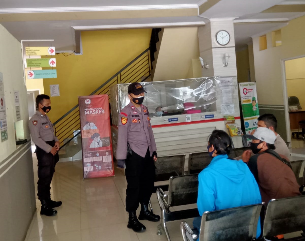 Melakukan Patroli Dialogis dengan tenaga medis dan dilaksanakan himbauan kepada para pasien tentang Penerapan Protokol Kesehatan dilingkungan klinik.