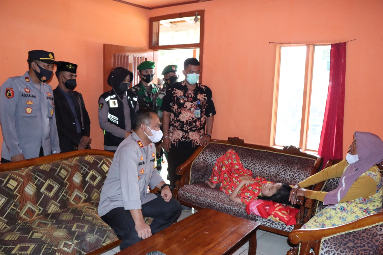 Mendapat informasi tentang penderita hidrocephalus, Kapolres Situbondo AKBP Ach. Imam Rifa’i. S.H., S.I.K., M.PICT., M.ISS. bersama H. Taufik menjenguk untuk memberikan tali asih guna membantu meringankan biaya perobatannya, Jum’at (26/11/2021)