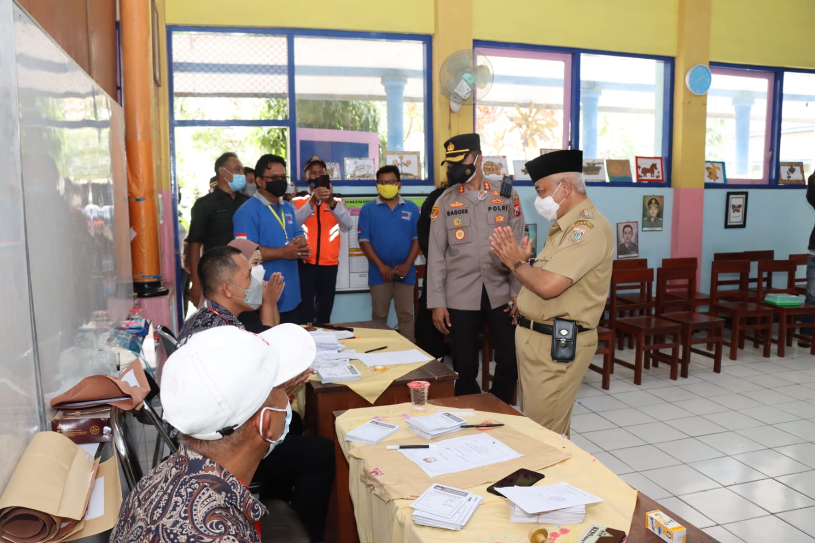 Kapolres Malang bersama Bupati Malang melakukan pengecekan pelaksanaan pemungutan suara pemilihan kepala desa terkait kerawanan dan juga penerapan protokol kesehatan.