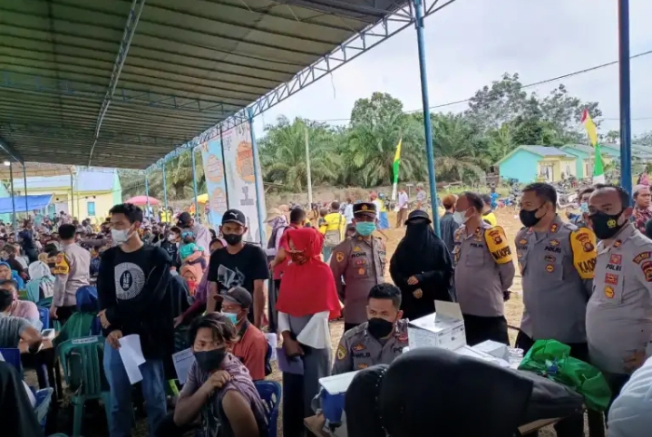 Kapolres Muaro Jambi AKBP Yuyan Priatmaja SIK MH tinjau langsung pelaksanaan vaksinasi dengan didampingi Wakapolres Kompol Novrizal SSos MH, Kapolsek Jaluko Iptu Irwan SH, Kabag Log AKP A Roni Canra SH MH, Kalak BPBD Ardanus , Kadis Capil Zakaria , Kadis Sosial H Rosa Candra Budi dan petugas yang melaksanakan vaksinasi