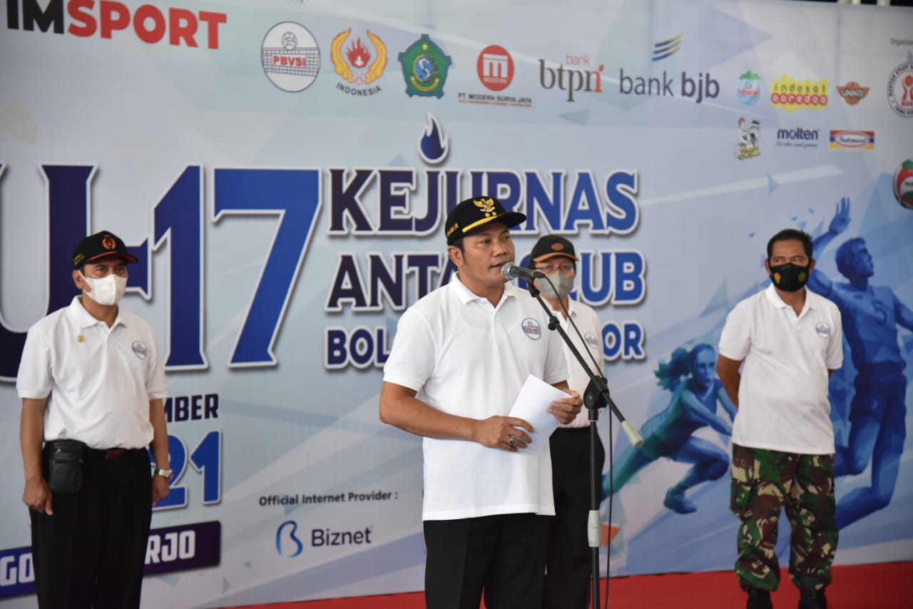 Pagi tadi Kejurnas antar club bola voli indoor U17 dibuka langsung oleh Ketua PBVSI Pusat Imam Soedjarwo di gedung serbaguna GOR Sidoarjo, Senin, (6/12). Wakil Bupati Sidoarjo H. Subandi SH hadir dalam kesempatan tersebut.