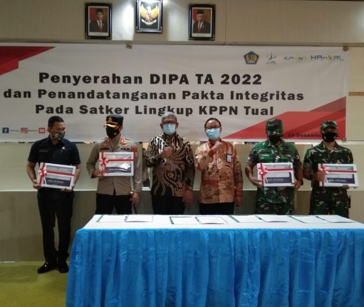 Sementara itu, hadir pada penyerahan ‘DIPA TA 2022, Kepala Kantor Pelayanan Perbendaharaan Negara (KPPN) Tual, Royikan S.E.,M.M, Kajari TualDicky Darmawan S.H, Kapolres Tual Dax Emanuelle S.M, Danlanal TualKolonel Laut (P) Indra Dharma S.E.,M.Tr.,Hanla, yang mewakili Danlanud Dumatubun Langgur, dan Para kuasa pengguna anggaran satuan kerja mitra ‘KPPN