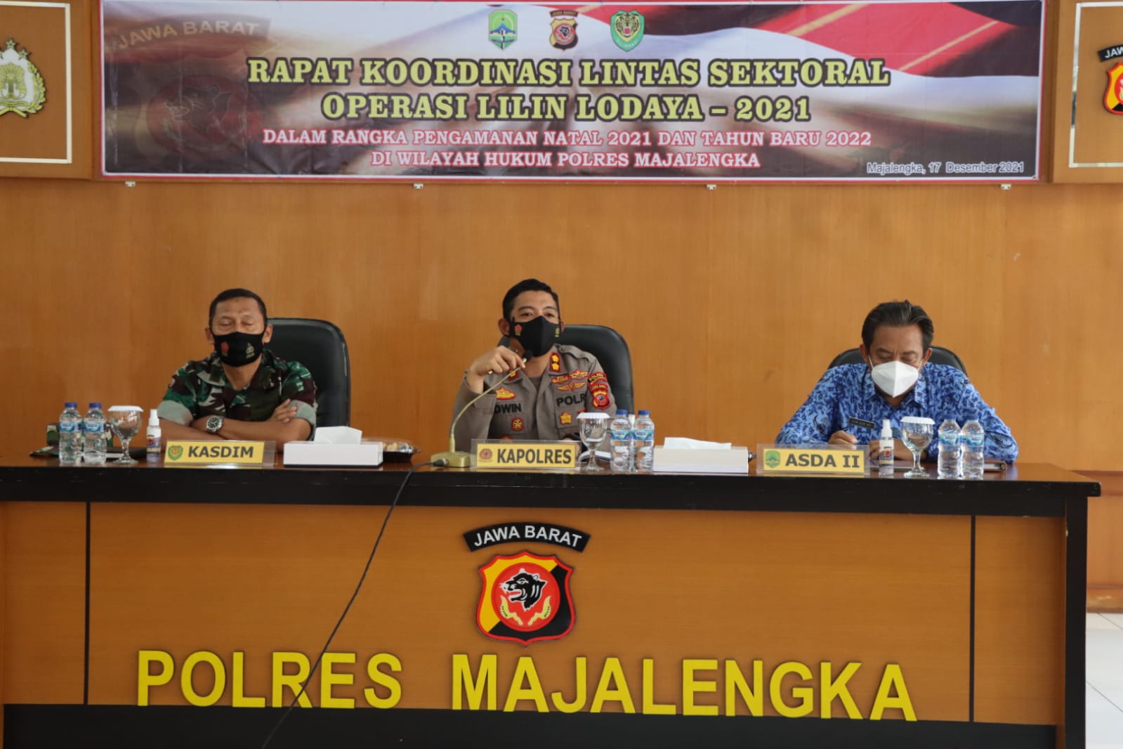 Polres Majalengka bersama intansi terkait gelar Rapat Koordinasi Lintas Sektoral Ops Lilin Lodaya – 2021 dalam rangka pembahasan pengamanan dan pontensi kerawanan pada saat natal 2021 dan tahun baru 2022 di wilayah hukum Polres Majalengka, bertempat di Aula Sindangkasih Polres Majalengka, Jumat (17/12/2021).