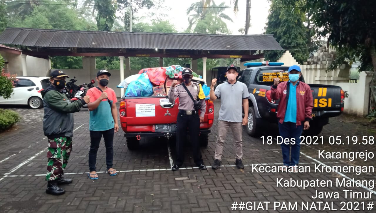 Dalam kegiatan ini, Kapolsek Kromengan juga ikut dalam rombongan dan menyalurkan langsung di Posko kantor Kecamatan Pronojiwo.