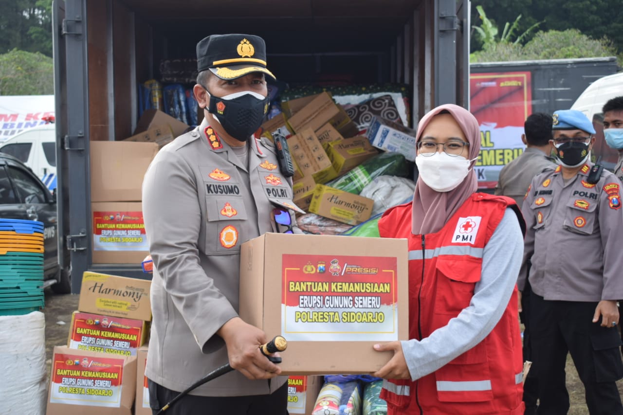 Selain itu, hadirnya Kapolresta Sidoarjo beserta rombongan untuk memberikan bantuan kepedulian dampak erupsi Gunung Semeru. Antara lain, berupa bantuan sembako, biskuit, kasur, selimut, perlengkapan mandi, masker, hand sanitizer dan beberapa barang untuk kebutuhan warga.