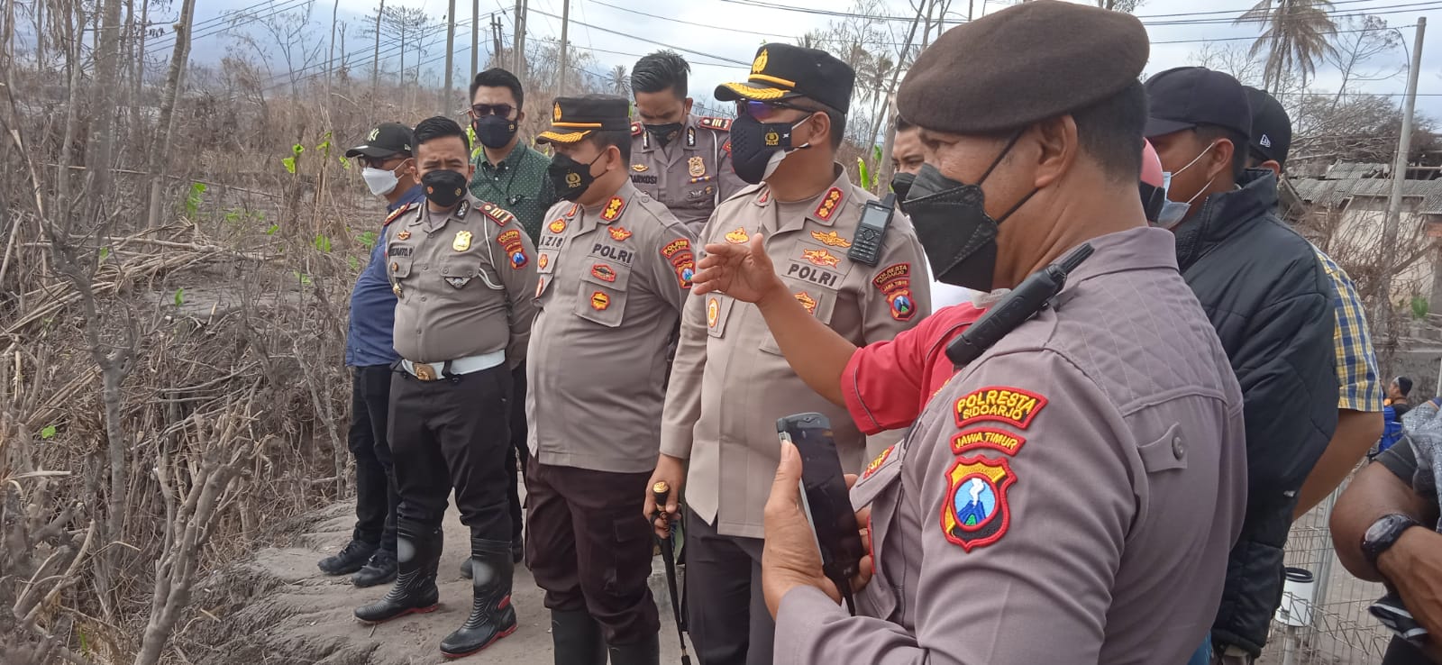 Kapolresta Sidoarjo dan Kapolresta Gresik menyatukan keadaan para di desa menanggal kecamatan pronojiwo, iya saat ini kami melihat dan mengecek langsung keadaan pengungsi pengungsi korban letusan gunung Semeru bersama Kapolres Gresik, serta kita turunkan bansos 2 unit truck box engkel dari Polresta Sidoarjo/Polres Gresik, pantauan dari pihak kepolisian di area kampung tersebut bisa kita upayakan bantuan berupa sekrop, pacul, dan alat alat terkait pembagunan, dua bapak Kapolres ini berinisiatif dan kedepannya akan membantu yang lebih baik, tutur Kapolresta Sidoarjo.