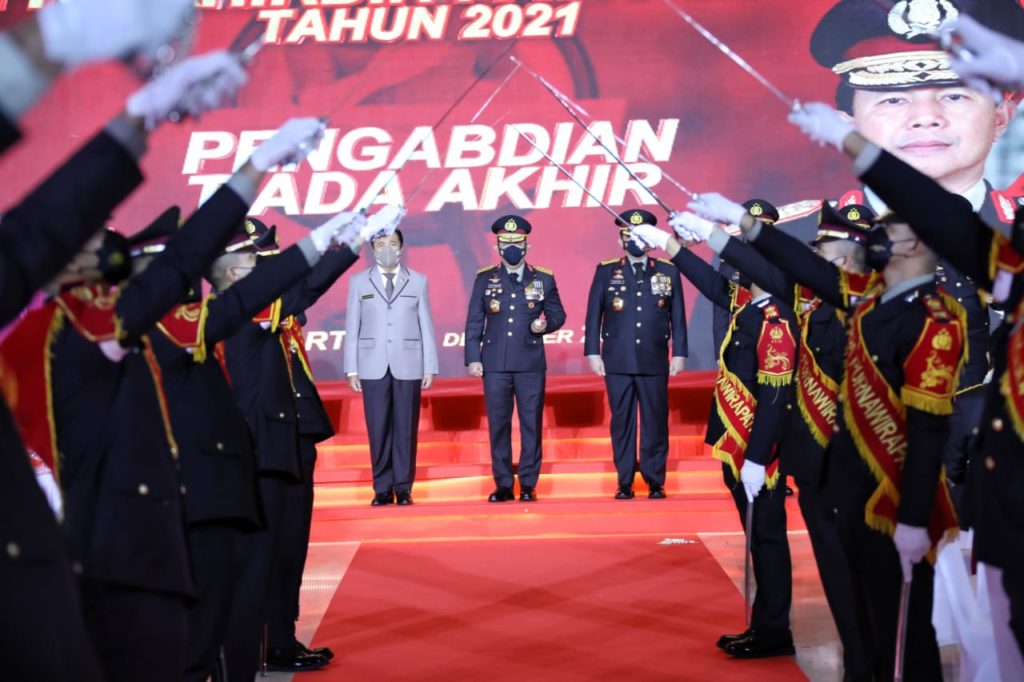 “Sehingga kita bisa terus menyesuaikan dan eksis sebagai suatu lembaga atau institusi modern untuk bisa menyesuaikan apa yang menjadi harapan masyarakat. Sebagaimana pendapat ahli bahwa yang mampu bertahan hidup bukan yang terkuat dan cerdas, namun dialah yang paling bisa beradaptasi dengan perubahan. Hal ini harus kita pertahankan untuk menjaga dan membawa Tribrata untuk kita kibarkan lebih tinggi,” ucap Sigit.