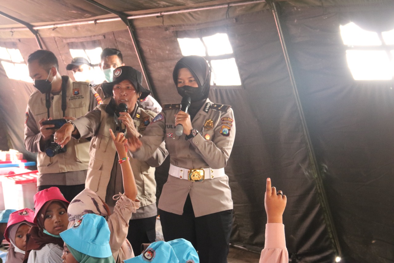Lebih lanjut, Iptu Daya menambahkan kegiatan diisi dengan mengajak korban utamanya anak-anak untuk bermain, bernyanyi, menggambar dan berdialog dengan warga serta menceritakan hal-hal menarik.