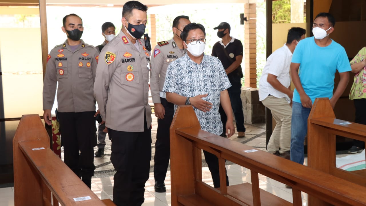 Kapolres Malang AKBP Bagoes Wibisono tinjau beberapa gereja di Kabupaten Malang. Rabu (22/12/2021). Peninjauan ini untuk memastikan perayaan Natal 2021 di Kabupaten Malang berjalan dengan aman dan kondusif.