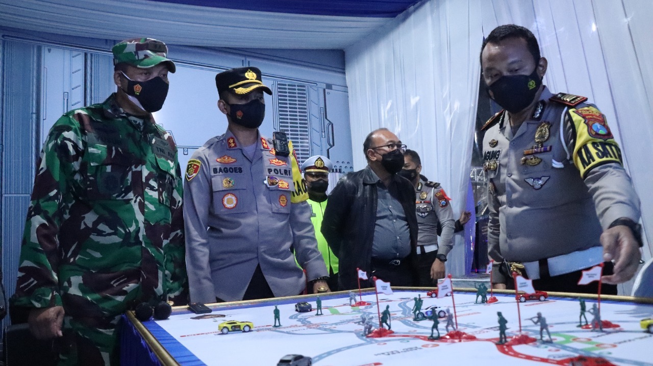 Kapolres Malang AKBP Bagoes Wibisono beserta Jajaran Forkopimda Kabupaten Malang melakukan pengecekan dan kontrol kesiapan Pos Pam Natal 2021 dan Tahun Baru 2022 (Nataru) di beberapa Exit Tol Kabupaten Malang, Jumat (24/12/2021).