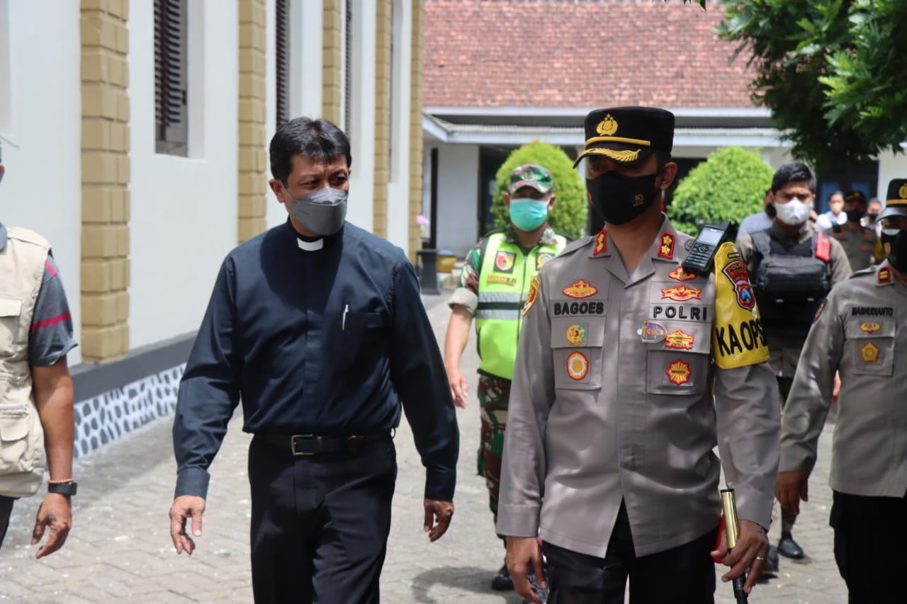 Kapolres Malang AKBP Bagoes Wibisono bersama Pejabat Utama Polres Malang melakukan kunjungan di beberapa gereja yang masuk wilayah hukum Polres Malang, Sabtu (2512/21). Kunjungan tersebut dilakukan dalam rangka melihat langsung jalannya ibadah hari natal.