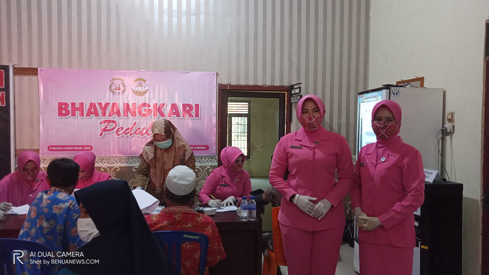 Dukung Program Pemerintah dan Polres Muaro Jambi dalam percepatan vaksin di wilayah hukum polres Muaro Jambi ibu – Ibu Bhayangkari Cabang Menggelar kegiatan Vaksin mandiri dan bakti sosial pembagian paket sembako kepada masyarakat yang mengikuti Vaksin, bertempat di Mapolsek Sekernan,Senin 27/12/21