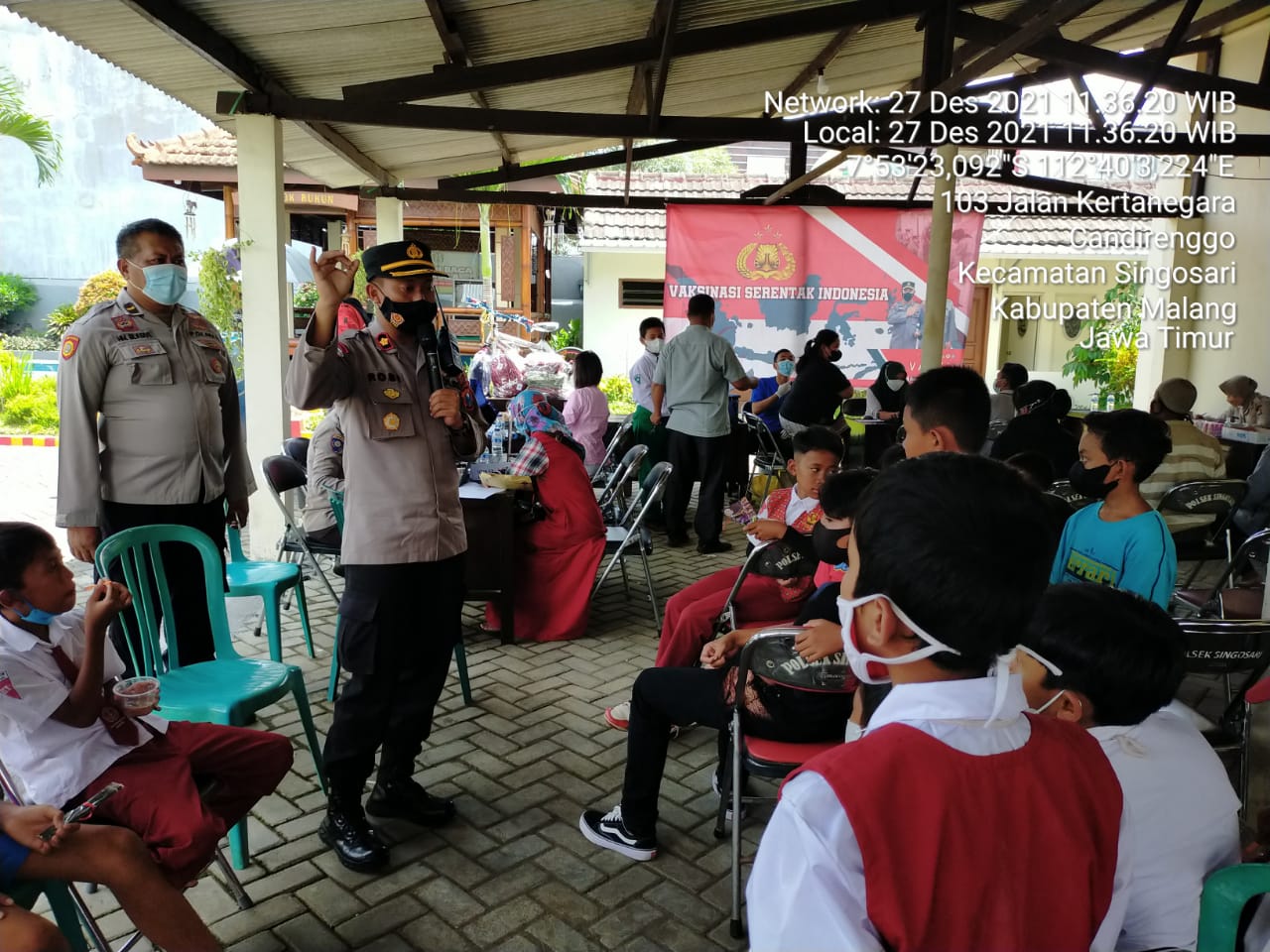 Kapolsek Singosari Kompol Achmad Robial pimpin pelaksanaan Gebyar Vaksin Serentak Indonesia di halaman belakang Polsek Singosari, Malang, Senin (27/12/21).