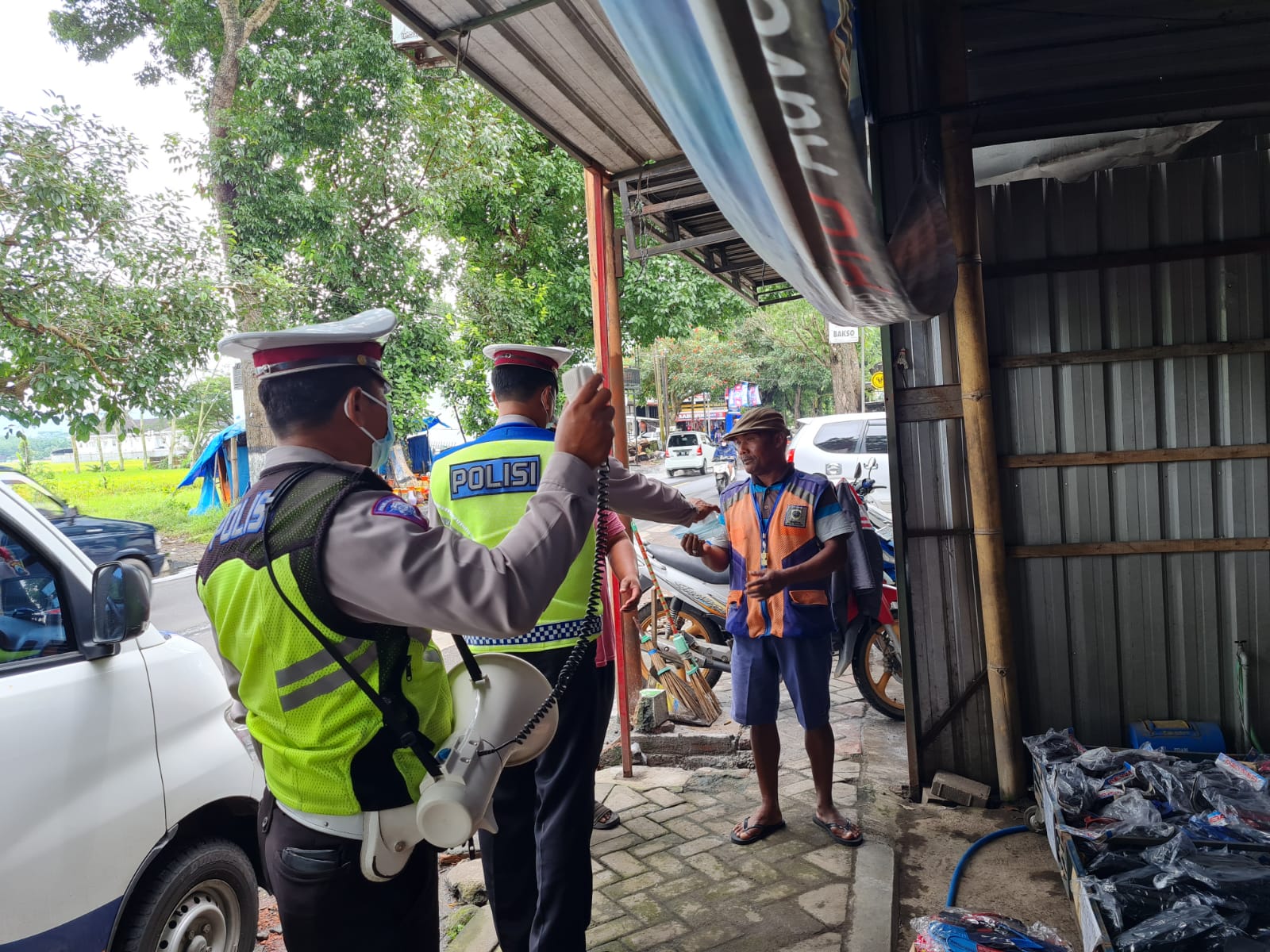 Untuk itu, Kasat Lantas Polres Malang AKP Agung Fitransyah melalui Kanit Kamsel Satlantas Polres Malang, Ipda Yulis melaksanakan himbauan kepada para masyarakat di sepanjang jalan Trunojoyo, Kepanjen, Kamis (30/31/2021)