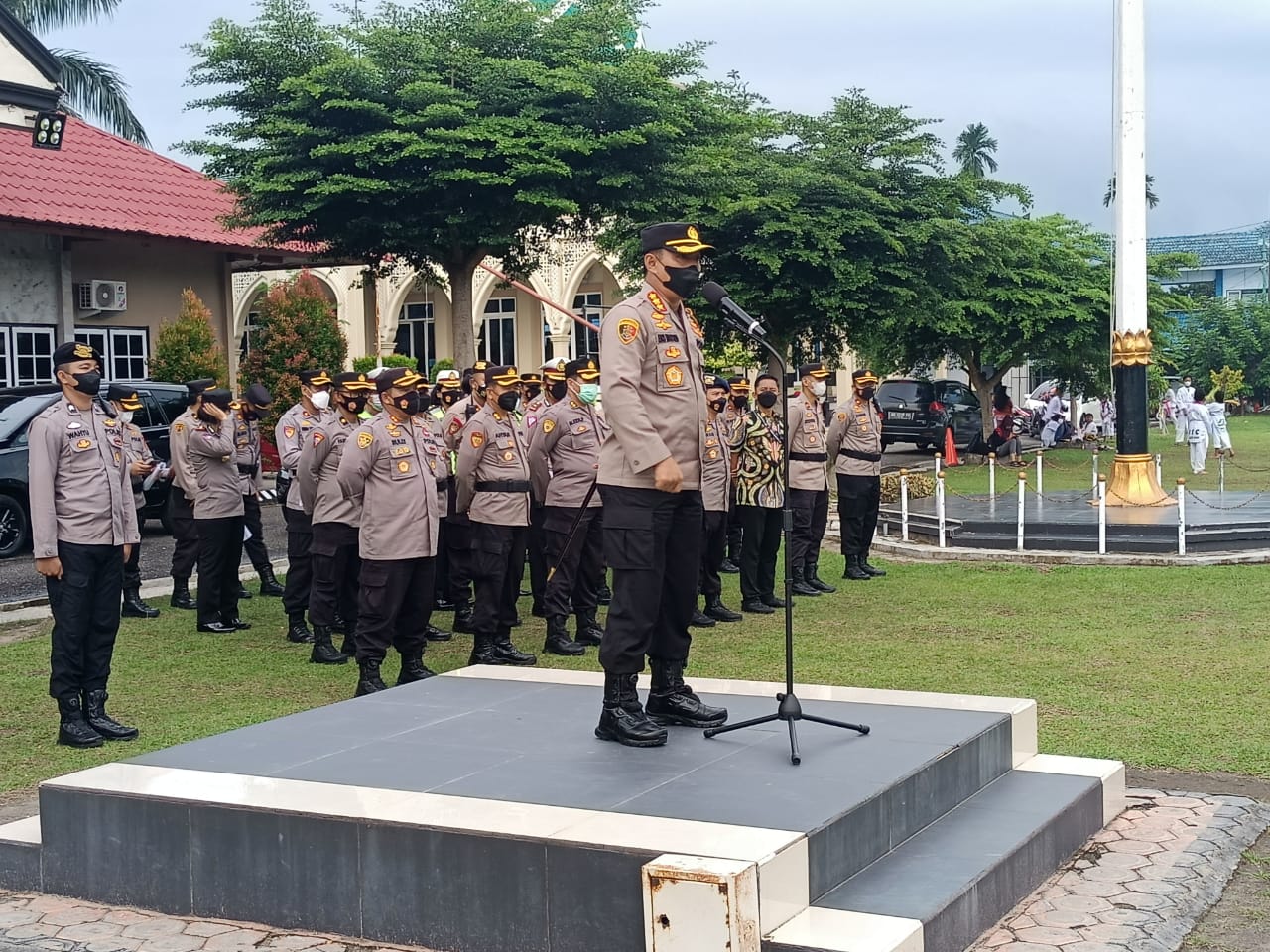 Apal kesiapan diikuti Wakapolresta AKBP Ruli Andi Yunianto SIK Kabag Ops , Serta para Kabag dan Kasat , para Kasi, para Kapolsek serta personel Polresta Jambi
