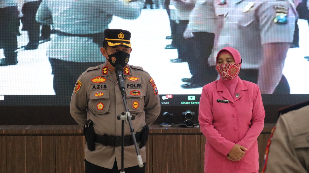 Kapolres Gresik AKBP Mochamad Nur Azis,SH,SIK,MSi., memimpin upacara pengangkatan secara virtual,hadir dalam upacara waka Polres KOMPOL Eko iskandar dan PJU Polres Gresik juga anggota yang naik pangkat perwakilan ibu bhayangkari