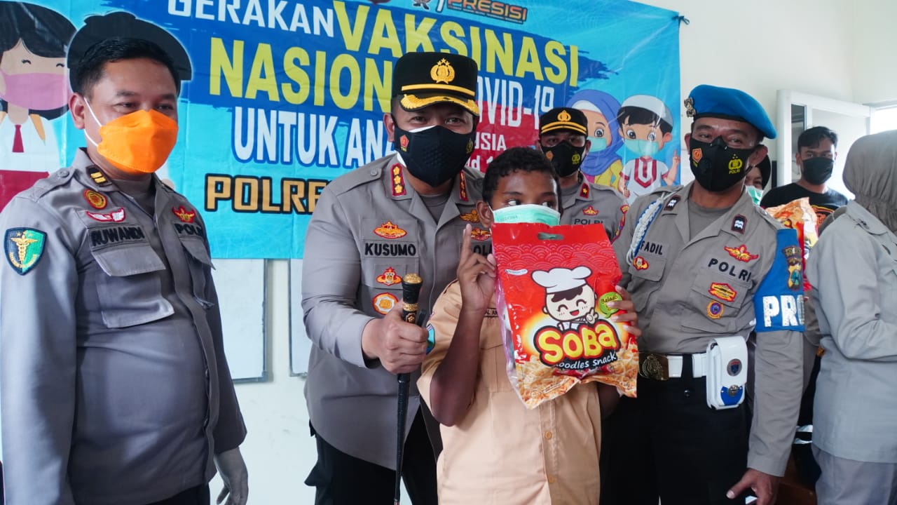 “Setelah masa libur sekolah, hari ini pertemuan tatap muka belajar mengajar kembali aktif. Karenanya kami bersama TNI, Dinas Kesehatan dan instansi terkait terus memasifkan vaksinasi bagi anak usia 6 sampai 11 tahun,” ujar Kapolresta Sidoarjo Kombes Pol. Kusumo Wahyu Bintoro.