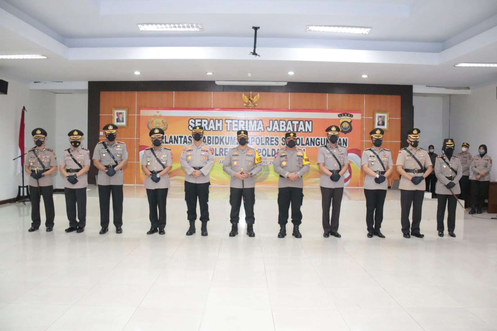 Berdasarkan Surat Telegram Kapolri Nomor ST/2570/XII/KEP/2021 tertanggal 17 Desember 2021 , dan hari ini dilaksanakan Sertijab empat Perwira tersebut yang dihadiri Wakapolda Jambi Brigjen Pol Drs Yudawan Roswinarso SH MH, Irwasda Kombes Pol Drs Raden Heru Prakoso, Karo Ops Kombes Pol Feri Handoko , Karo SDM Kombes Pol Anton Sudjarwo, Dirreskrimsus Kombes Pol Sigit Dani Sutiyono, Dirreskrimum Kombes Pol Kaswandi Irwan, Dansat Brimob Kombes Pol Nadi Chaidir, Dirintelkam Kombes Pol Bondan Witjaksono , Kapolresta Jambi Kombes Pol Eko Wahyudi Kabid Propam Kombes Pol Julihan Muntaha, Karumkit Bhayangkara AKBP dr El Yandiko, Kabag Binkar AKBP Ardiyanto,serta Pejabat Utama Polda Jambi serta Ketua Bhayangkari Polda Jambi dan pengurus