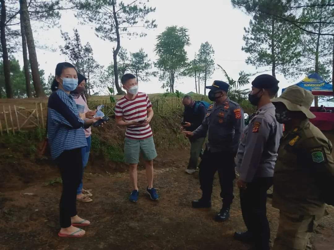 Personil Polsek Cikijing tetap menghimbau baik kepada warga sekitarnya dan pelaku wisata selalu disiplin protap kesehatan dalam mencegah Covid-19 klaster tempat wisata, terang Waka Polsek Cikijing IPDA Yudha.