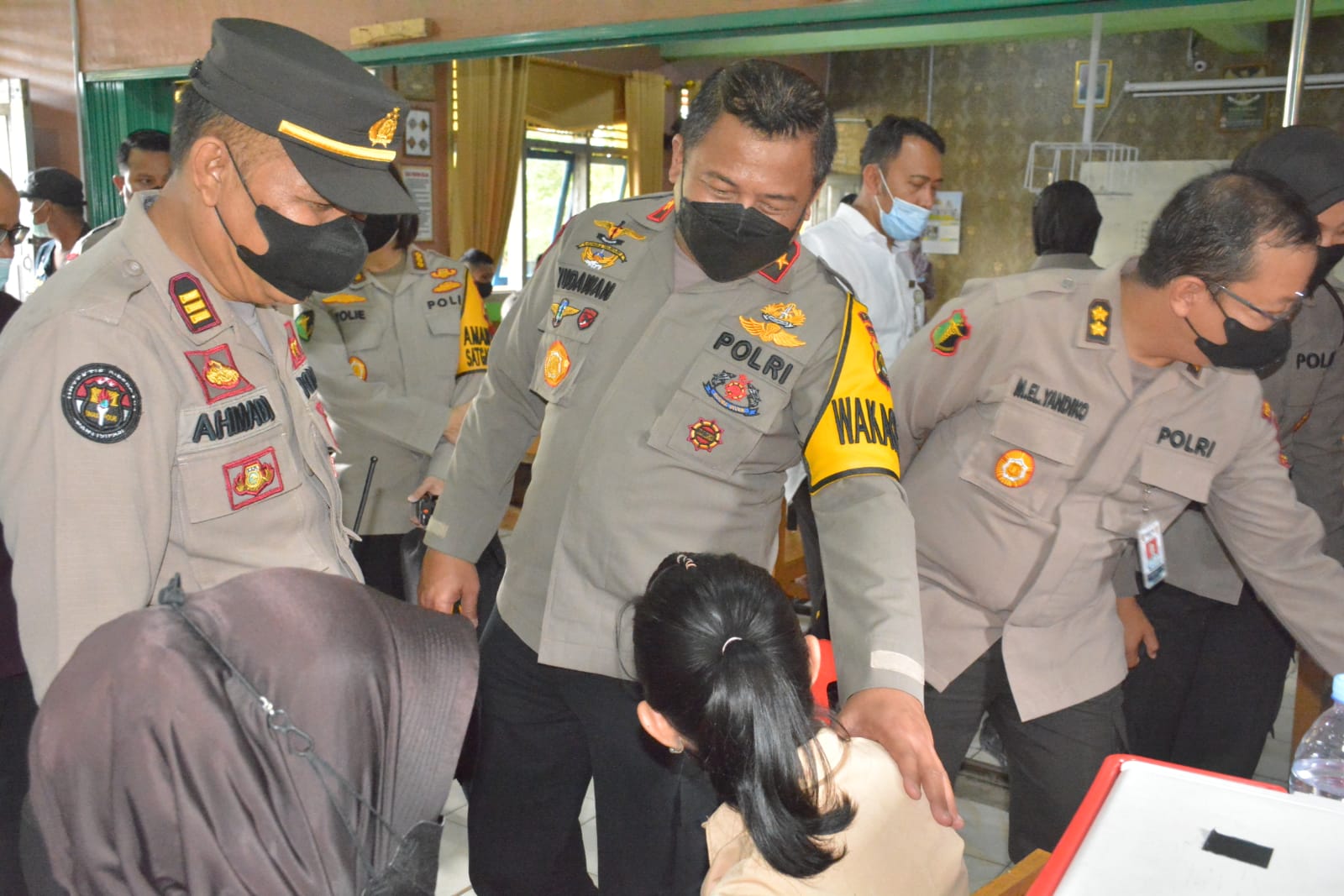 Wakapolda Jambi Wakapolda Jambi Brigjen Drs. Pol Yudawan R SH, MH meninjau pelaksanaan vaksinasi Merdeka Anak di SDN 205 Simpang Rimbo, Kota Jambi, Rabu (5/1/22).