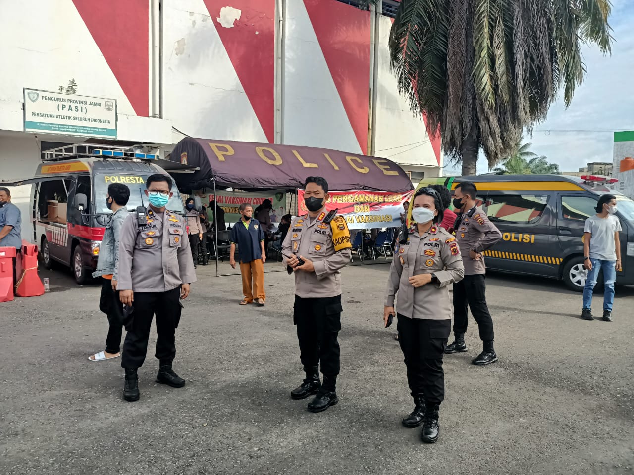Kita juga menyiapkan gerai vaksinasi oleh nakes dari Biddokes Polda Jambi dan Polresta Jambi , di luar stadion apabila pengunjung blm divaksin dua kali maka bisa mendaftarkan diri untuk divaksin dosis dua , tidak menutup juga untuk vaksin dosis 1