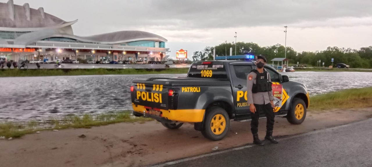 Dengan menggunakan kendaraan mobil patroli Satsamapta, petugas pun menyusuri kawasan Bandara Tjilik RIwut dengan tujuan menjaga kondisi kamtibmas pada tempat tersebut, yang merupakan salah satu objek vital di Kota Palangka Raya.