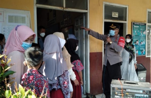 Wakapolres Garut Kompol Yopi.M didampingi Kapolsek Karangpawitan Kompol Suhartono, Sos. SH bersama Bhabinkamtibmas saat melihat Vaksinasi Covid-19 dengan sasaran pelajar SDN 1 dan 2 Situjaya usia 6 sampai 11 Tahun serta Masyarakat Umum.