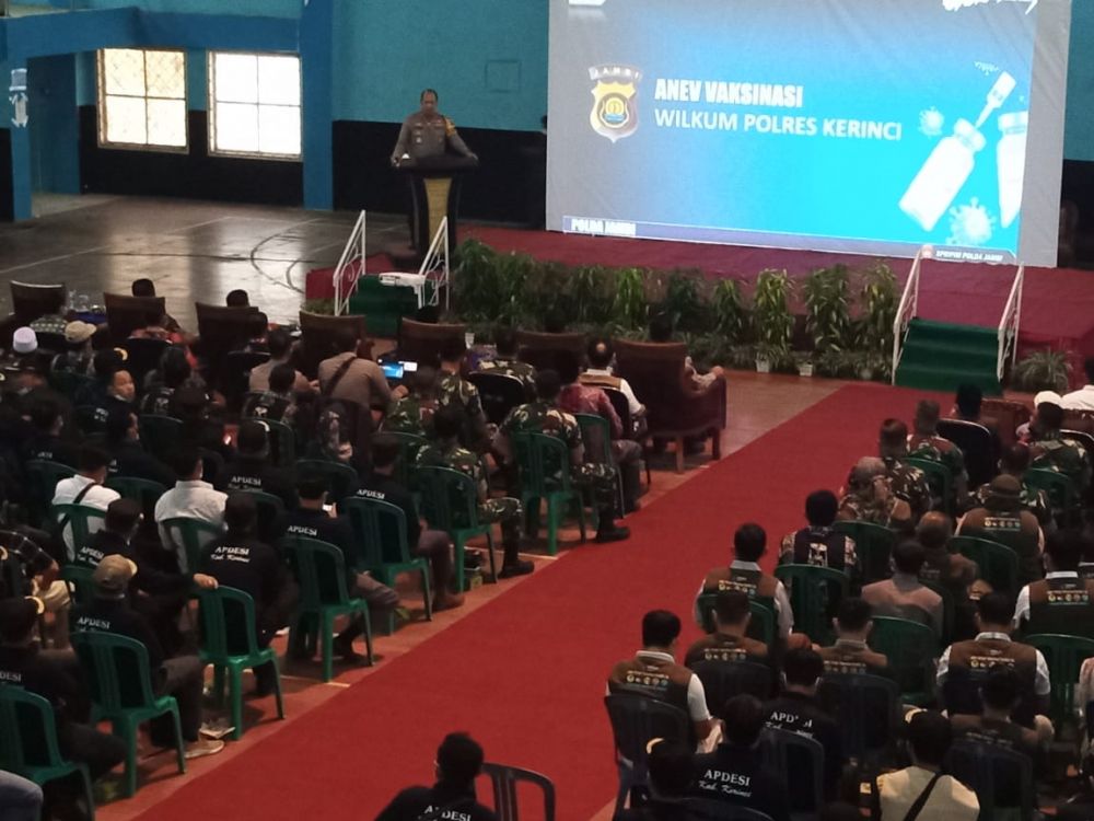 Kapolda melanjutkan, peta cakupan vaksinasi covid-19 dosis pertama Kabupaten Kerinci yang divaksin saat ini sebanyak 112.188 jiwa dari target 195.783 jiwa dengan pencapaian 57,3 persen.