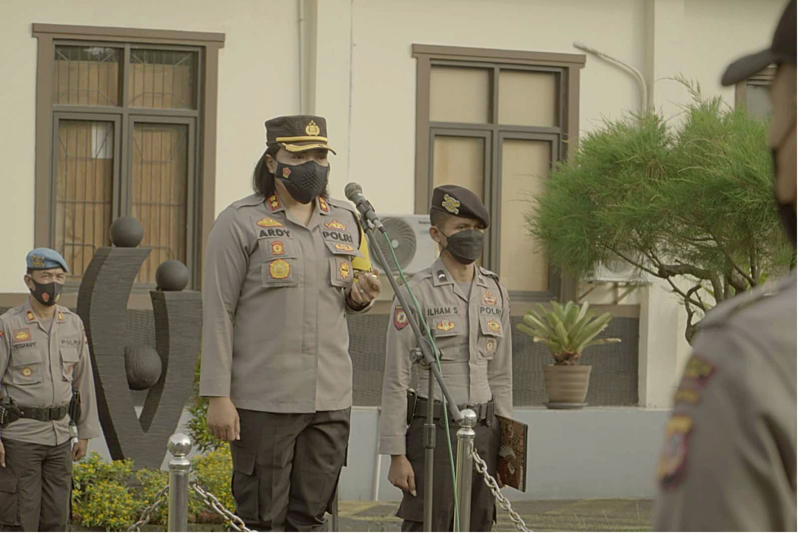 Kapolres Banjar AKBP Ardiyaningsih, S.I.K.,M.Si. pimpin apel jam pimpinan perdana di awal tahun 2022 dengan diikuti Wakapolres Banjar, Para Pejabat Utama, Para Kapolsek Jajaran, serta Para Perwira, dan diikuti oleh seluruh Personel Polres Banjar serta ASN dan perwakilan Polsek Jajaran. (10/01)