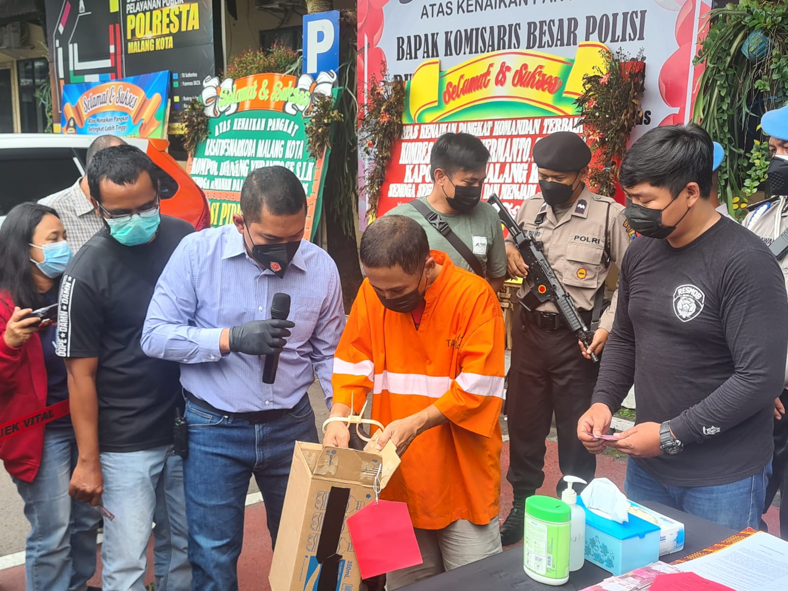 Sementara itu Kasat Reskrim Polresta Malang Kota Kompol Tinton mengatakan bahwa Pelaku melancarkan aksinya dengan menggunakan kardus untuk perantara penggandaan uang.