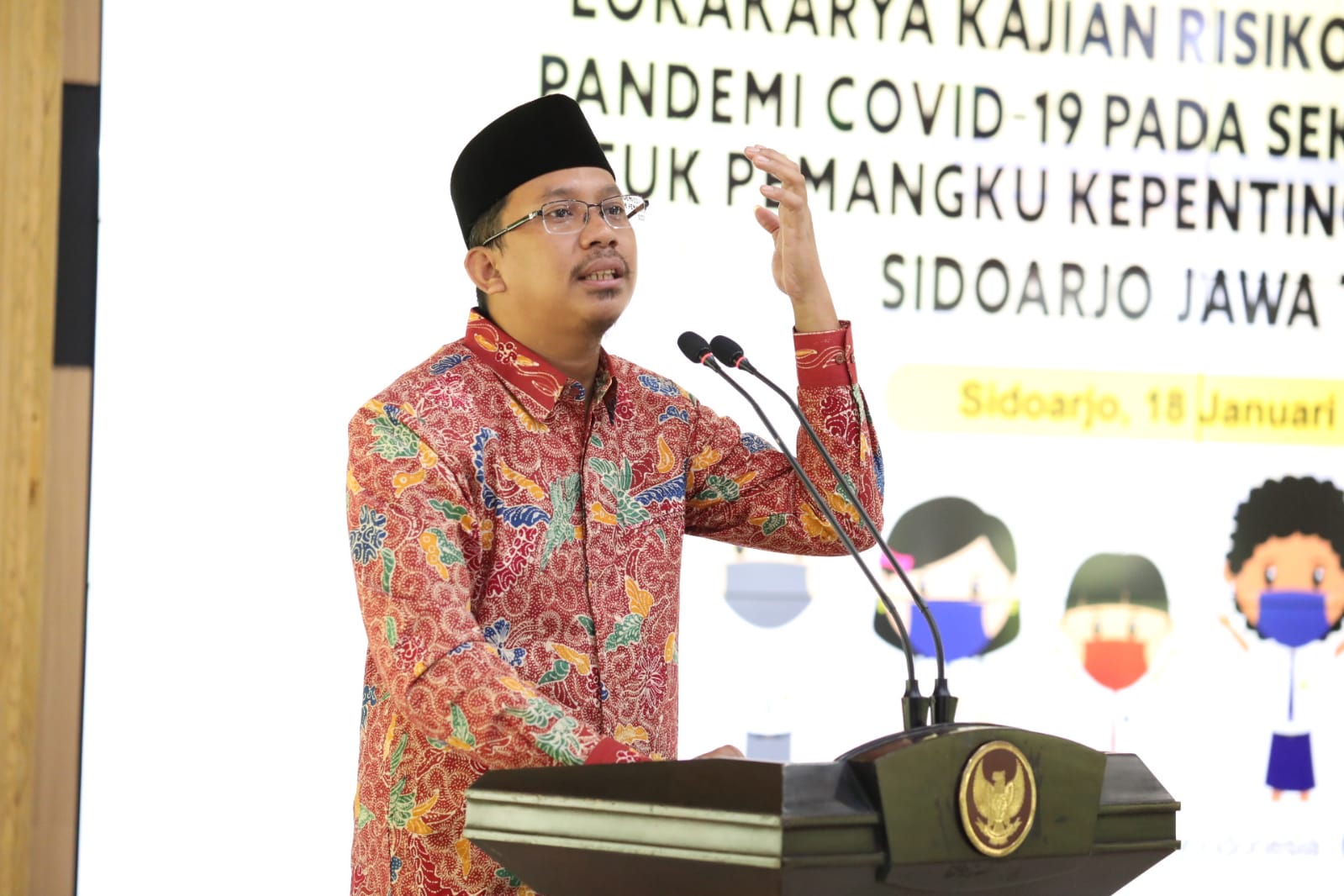 “Kunci pembangunan itu data, termasuk data masalah. Dapat data dari mana? Ya riset. Dari data, keluar rekomendasi. Kalau datanya tidak tepat, obatnya jadi keliru,” ujar Bupati Muhdlor saat membuka kegiatan “Lokakarya Kajian Risiko dan Kebijakan Pandemi Covid-19 pada Sektor Pendidikan Untuk Pemangku Kepentingan”, Selasa (18/1/2022) di Pendopo Delta Wibawa.