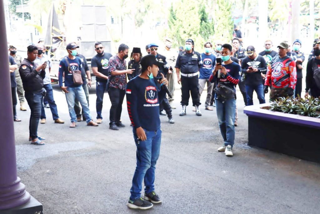 Kepolisian Resor Ciamis Polda Jabar melaksanakan pengamanan aksi unjuk rasa Ormas Gibas di Gedung DPRD Kabupaten Ciamis, Jawa Barat, Jumat (21/01/2022).