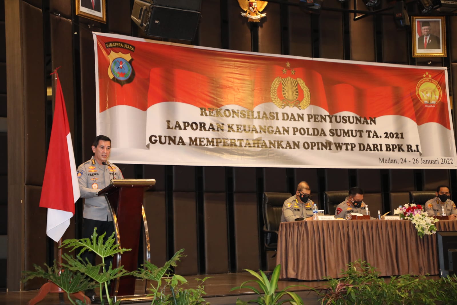 Bidkeu Polda Sumut melaksanakan acara Rekonsiliasi dan penyusunan laporan keuangan Polda Sumatera Utara TA. 2021 pada tanggal 24 sampai 26 Januari 2022, bertempat di Ballroom Le Polonia Hotel Medan.