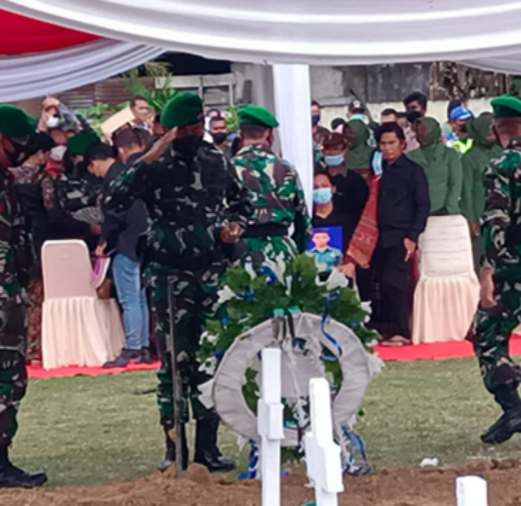 Suasana hati dan duka cita menghiasi dari pihak keluarga dan yang hadir mengikuti prosesi pemakaman ,yang berlangsung khidmad , sebagai penghormatan dan penghargaan atas jasa jasa dan pengorbanan bagi bangsa dan negara yang telah disajikan Praka Anumerta Tuppal AB yang telah gugur akibat penyerangan separatis teroris Papua dilakukan prosesi pemakaman secara militer .