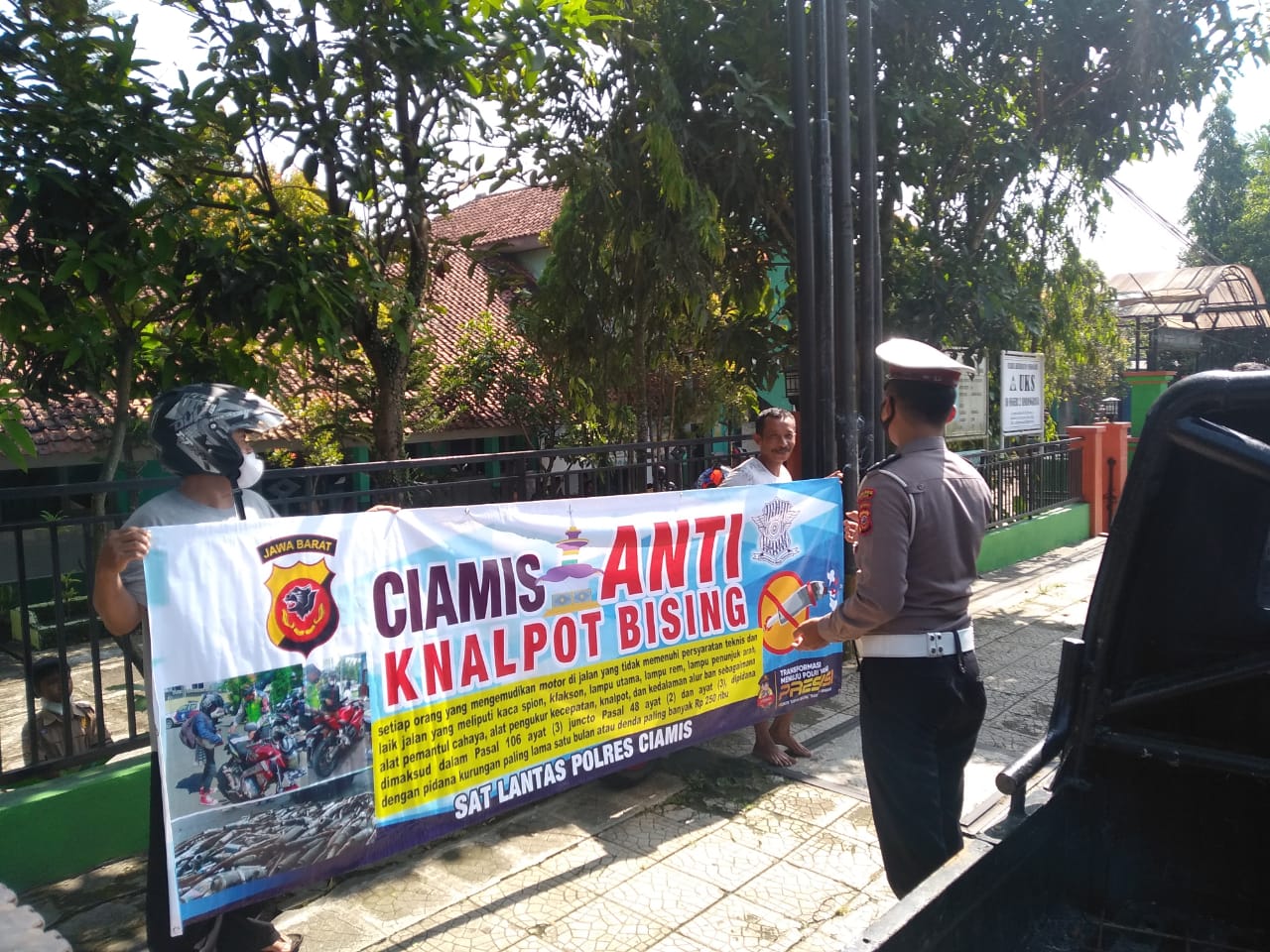 Kasat Lantas Polres Ciamis AKP Zanuar Cahyo Wibowo, S.I.K., mengatakan, edukasi yang disampaikan oleh anggota mengenai tertib berlalu lalu lintas. Salah satunya sosialiasasi larangan penggunaan knalpot bising/brong. Baik kenadaraan roda dua maupun roda empat.