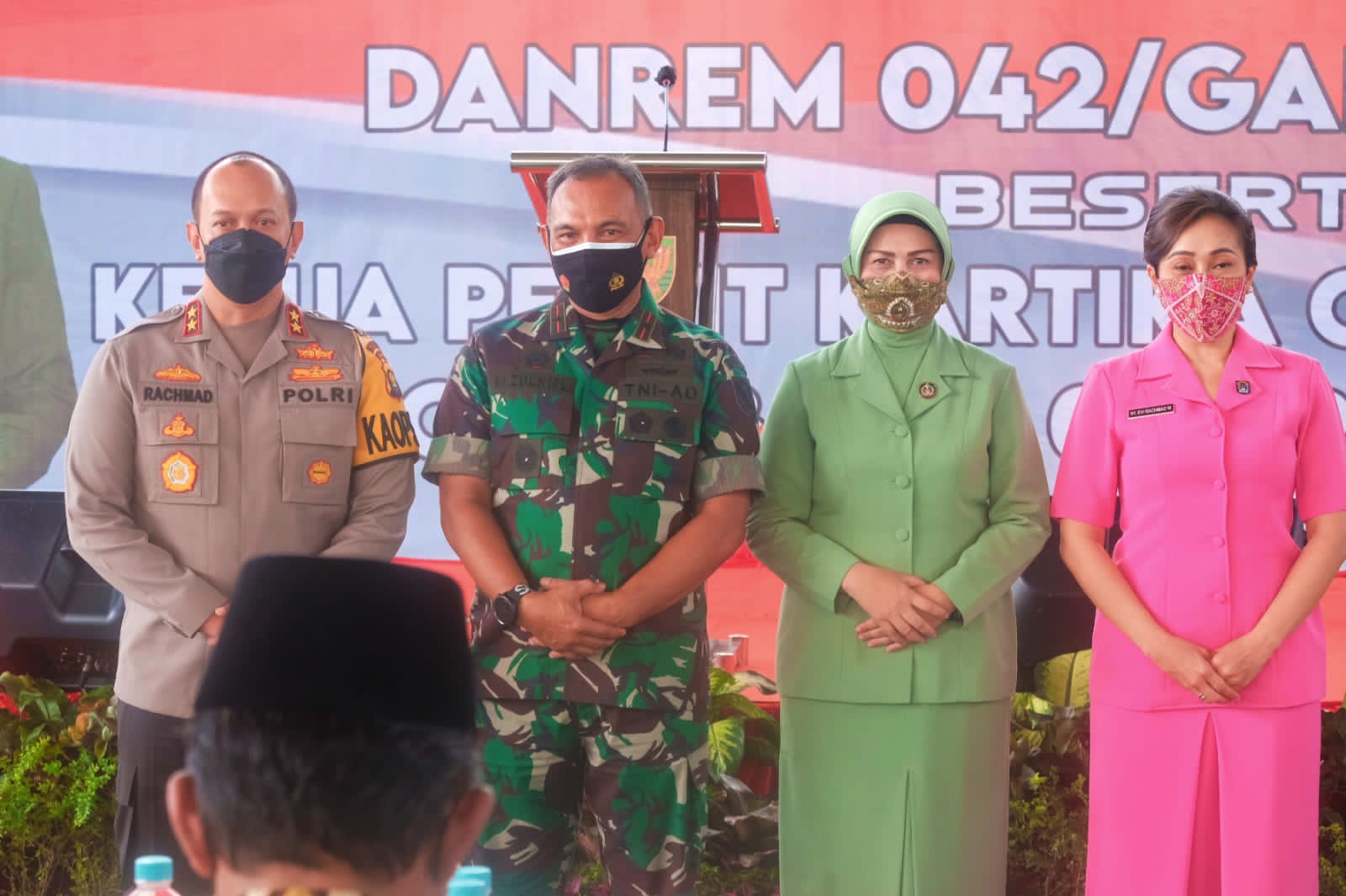 Kapolda Jambi Irjen Pol Albertus Rachmad Wibowo bersama Ibu Ketua Bhayangkari Daerah Jambi Ny. Evi Rachmad Wibowo menghadiri acara lepas pamit Danrem 042/Garuda Putih beserta Ketua Persit Kartika Chandra Kirana Koorcab Rem 042 PD II/ Sriwijaya, Di Lapangan Tenis Makorem 042/ Garuda Putih, Kamis (3/2/22).