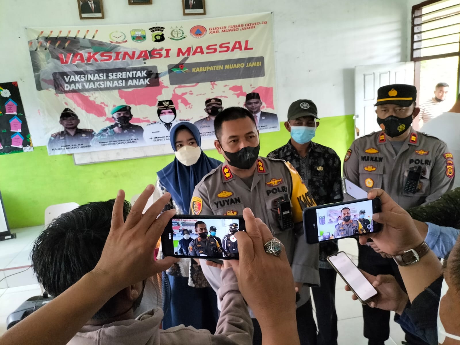 Kapolres Muaro jambi juga menyampaikan tujuan anak divaksin untuk mempercepat pertemuan tatap muka untuk belajar.