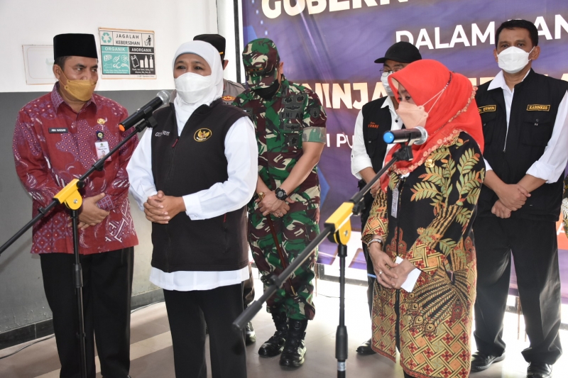 Jatim Gubernur Jawa Timur, Khofifah Indar Parawansa, melakukan peninjauan tempat Isolasi Terpusat (Isoter) di Puskesmas Sidayu Gresik, Jumat (4/2/2022).