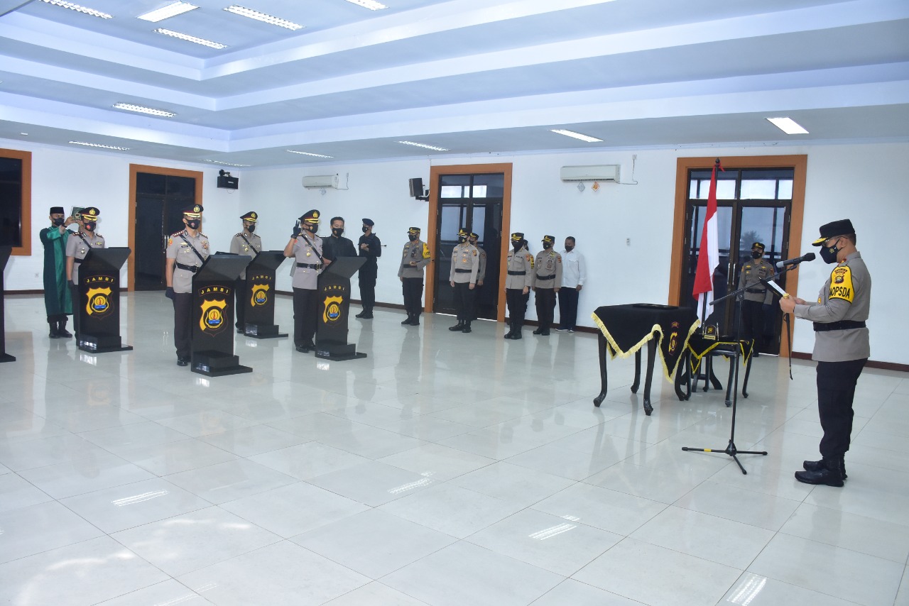 Kepala Kepolisian Daerah (Kapolda) Jambi Irjen Pol A Rachmad Wibowo memimpin upacara Serah Terima Jabatan (Sertijab) Dirreskrimsus, Kapolres Batanghari dan Kapolres Merangin di Aula Lantai 4 Gedung Utama Mapolda Jambi, pada Jumat (4/2/22).