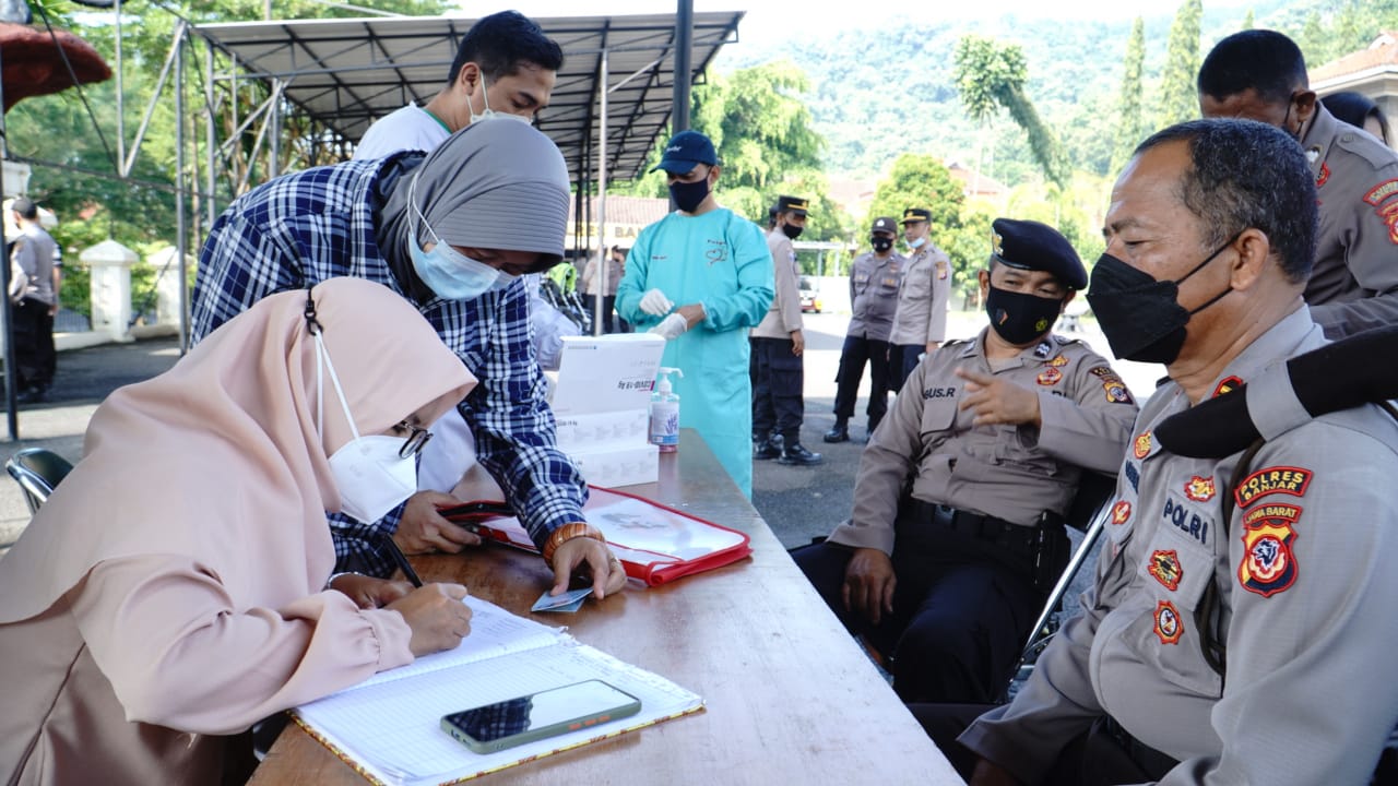 Polres Banjar Laksanakan Test Swab untuk Meningkatkan Keadaan Lingkungan Kerja Bebas Covid-19