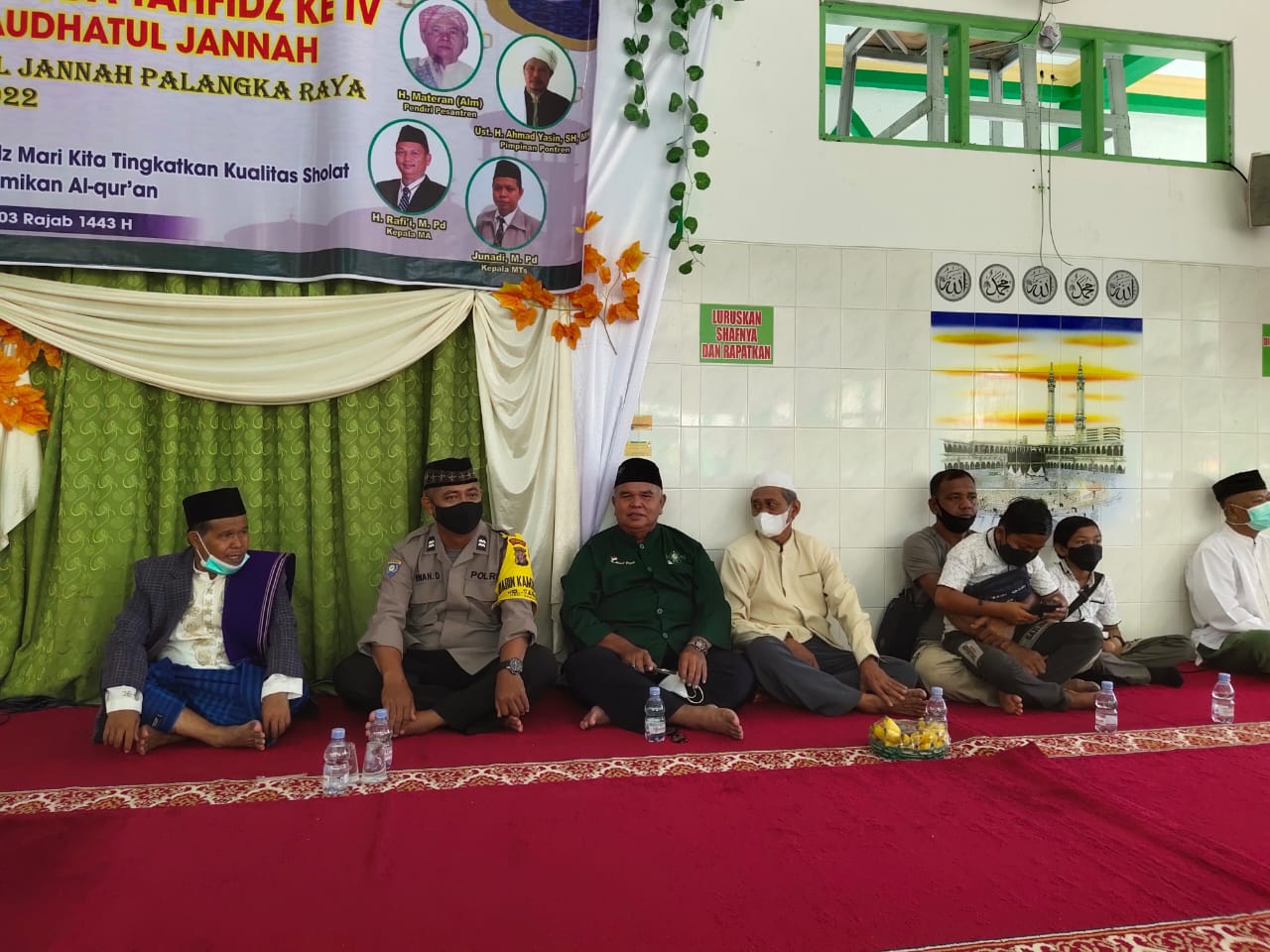 Bhabinkamtibmas Polsek Sebangau, Polresta Palangka Raya, Polda Kalteng Aiptu Irwan Darmawan menghadiri kegiatan Isra Miraj dan Wisuda Tahfidz Ke IV Santri MA dan MTs Raudhatul Jannah.