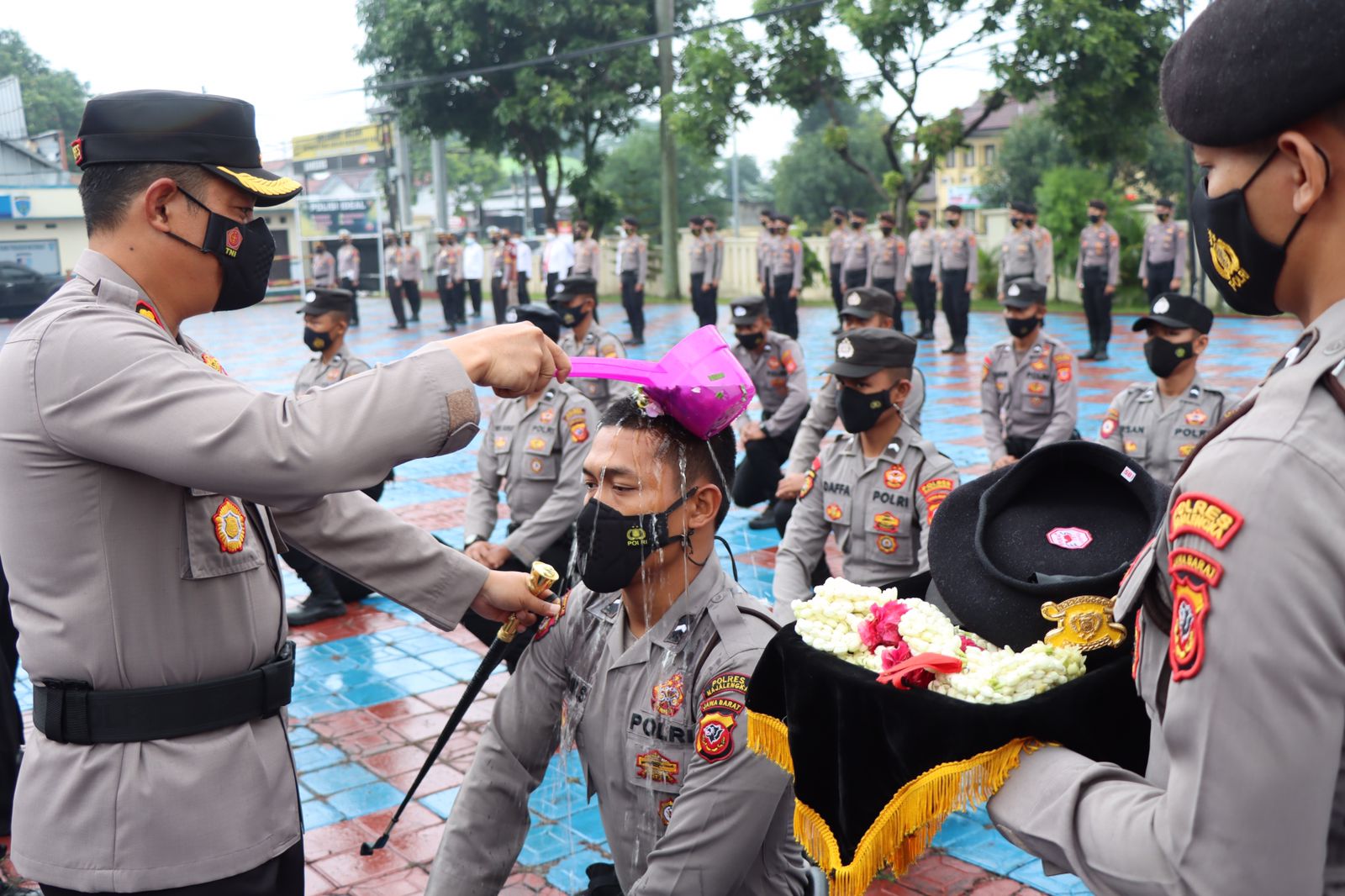 AKBP Eswin Affandi mengucapkan selamat kepada 20 bintara remaja lulusan tahun 2021 yang telah selesai menjalani tradisi pembaretan selama kurang lebih 2 hari, sejak 5 Februari hingga 6 Februari ini.